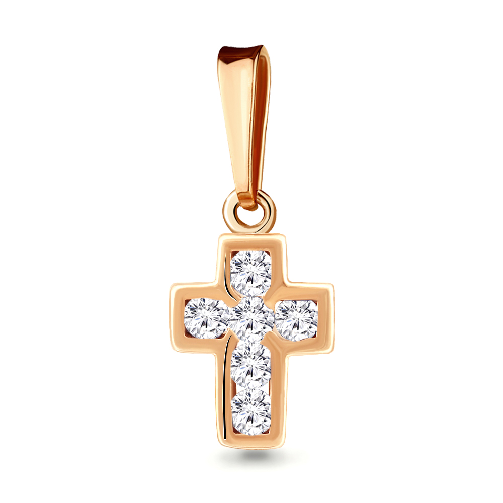 —Декоративный крестик из красного золота с фианитами