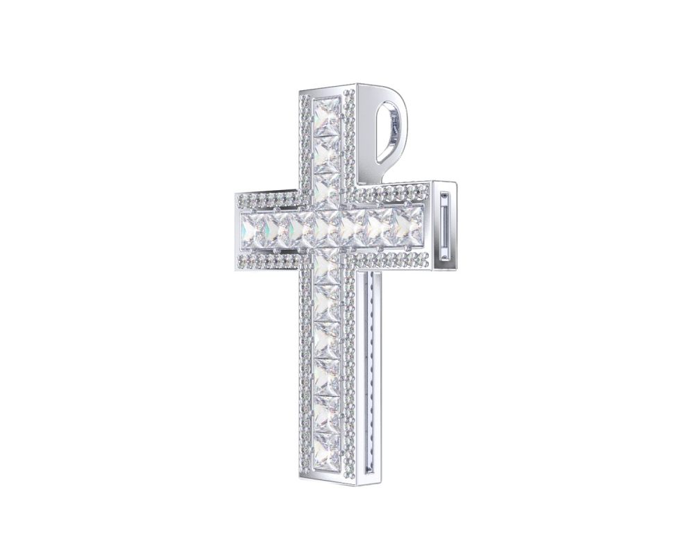 Роскошный декоративный крестик из серебра с фианитами сочетает в себе духовную символику и элегантный дизайн. Серебро, благодаря своей благородной матовости, подчеркивает чистоту и свет, исходящие от крестика. Фианиты, сверкающие всеми цветами радуги, добавляют аксессуару блеска и роскоши, делая его настоящим произведением ювелирного искусства. Такой крестик станет не только стильным дополнением к вашему образу, но и символом веры и духовности.