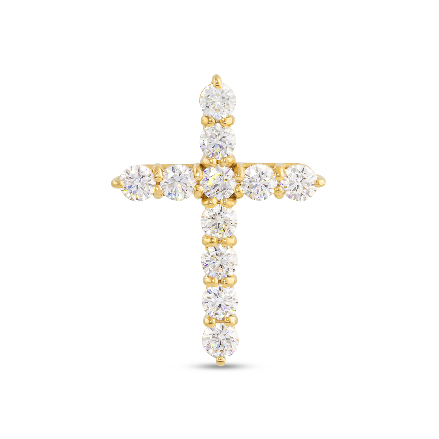 Декоративный крестик из желтого золота — изящное украшение, которое станет прекрасным дополнением вашего образа. Украшенный 11 сверкающими бриллиантами, этот аксессуар придаст особый шарм любому наряду. Благодаря сочетанию качества материалов и мастерства исполнения, такое изделие становится статусным дополнением к любому образу.