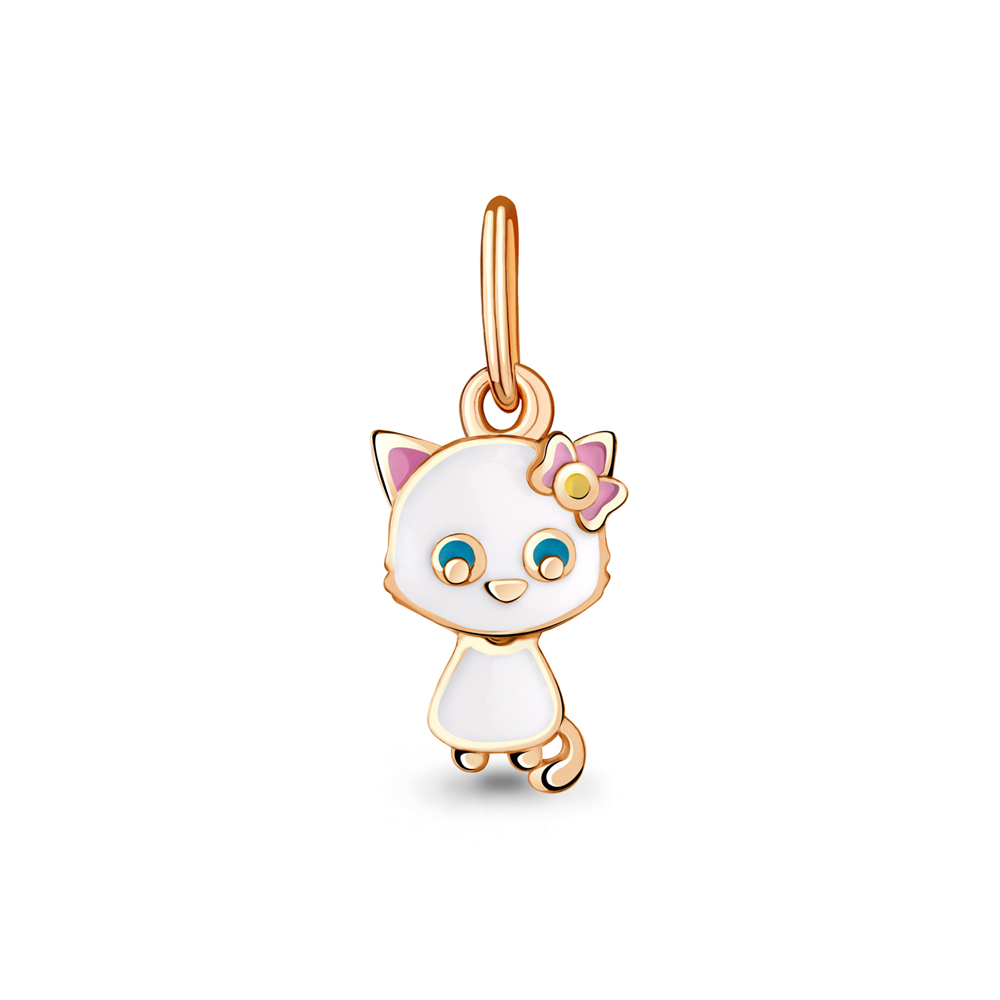 Милая декоративная подвеска для девочек в виде очаровательной кошечки выполнена из красного золота 585 пробы. Чудесная подвеска, украшенная цветной эмалью, понравится юным модницам, и станет любимым украшением для повседневной носки. Кулон будет отличным подарком на любой праздник для вашего ребенка. Приобретайте подвеску выгодно в магазинах Мир Золота.