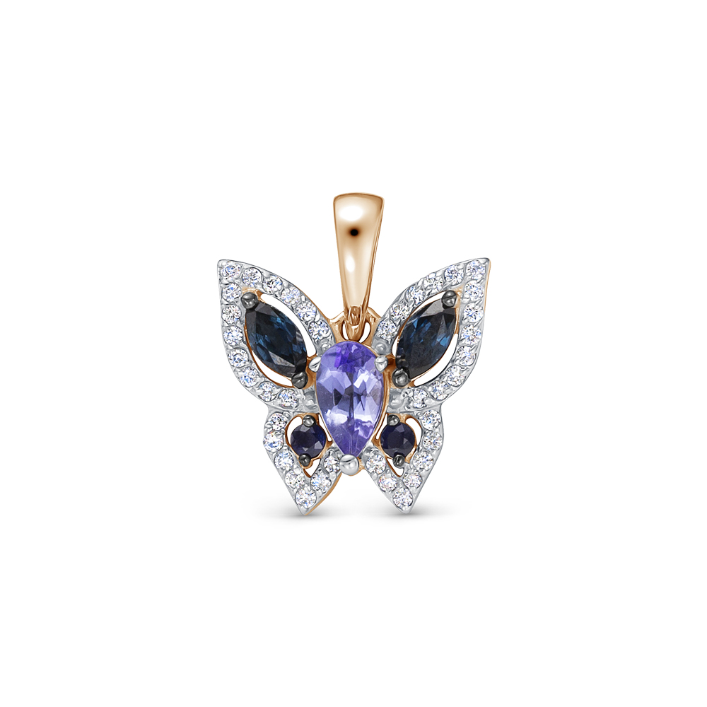 —Подвеска из красного золота с танзанитом, сапфирами и бриллиантами "Бабочка"