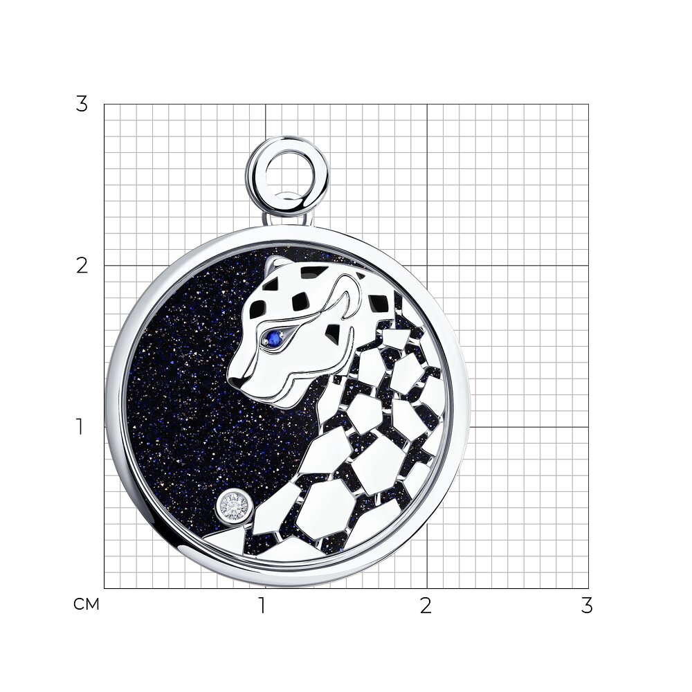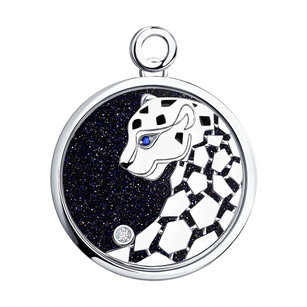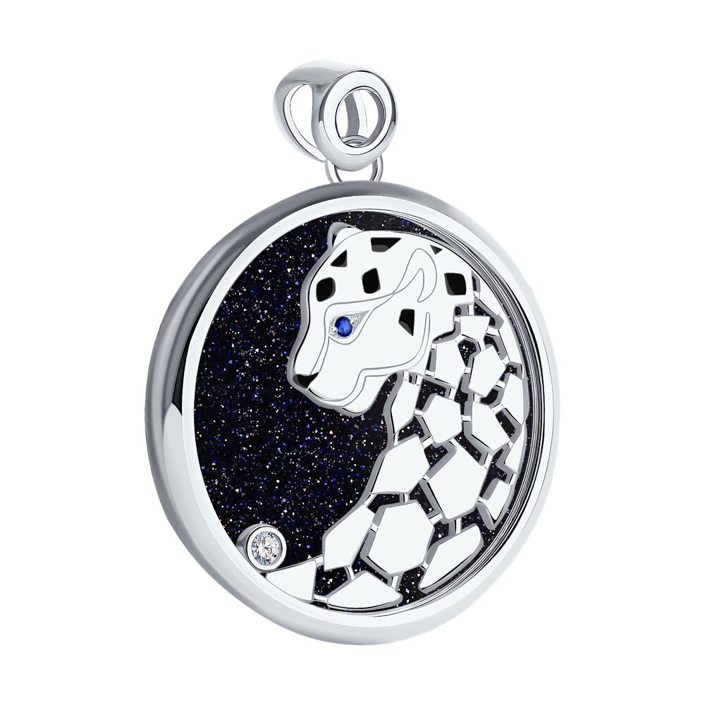 Подвеска из белого золота с сапфиром, бриллиантом и авантюриновым стеклом