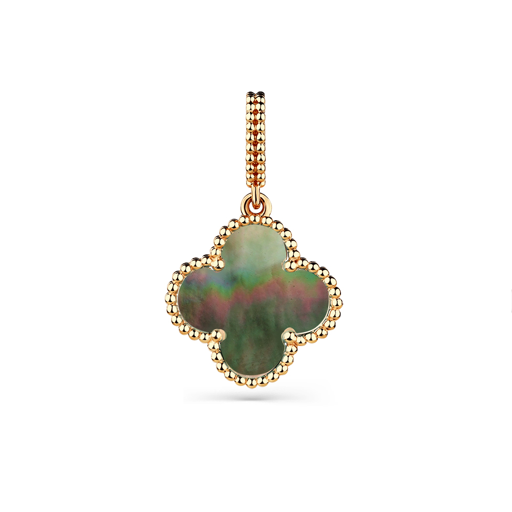 Декоративная подвеска Клевер с перламутром выполнена из красного золота 585 пробы. Чудесная подвеска с дизайном в форме четырехлистника, с переливчатым блеском черного перламутра, внесет яркий привлекательный акцент в стильный женственный образ. Приобретайте очаровательное ювелирное украшение по выгодным ценам в магазинах Мир Золота.