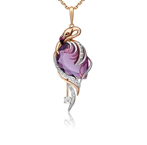 —Подвеска из красного золота с аметистом и топазами «Фламинго»