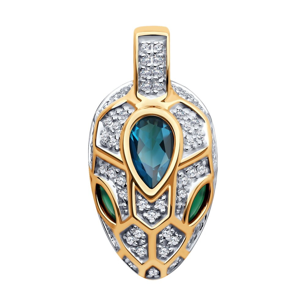 Подвеска из красного золота с агатами, топазом и фианитами