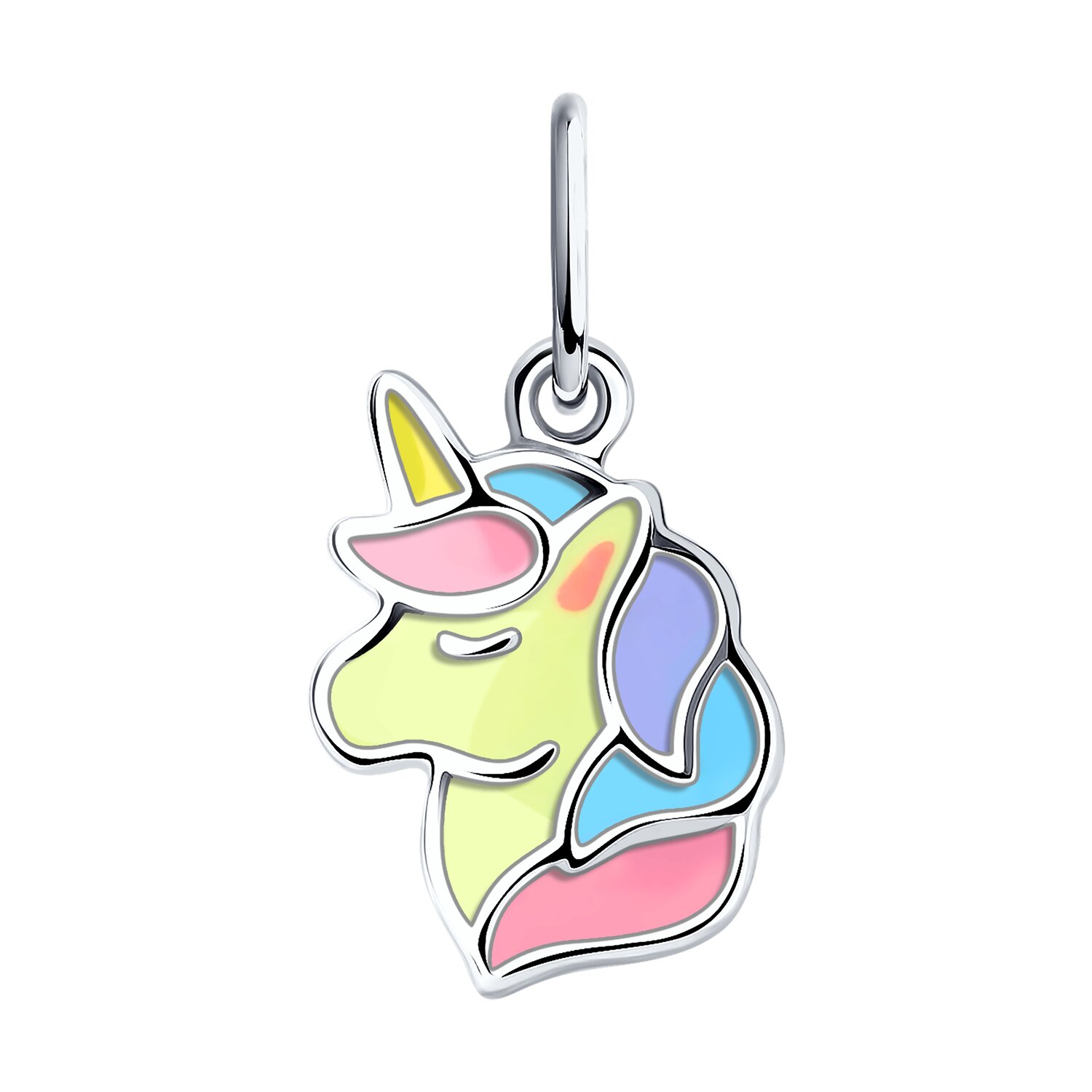 Яркая серебряная детская подвеска пони-единорог украшенная цветной эмалью, станет поводом для хорошего настроения вашей малышки. Очаровательная миниатюрная подвеска прекрасно дополнит наряды юной модницы; имеет удобное крепление к цепочке или шнуру. Приобретайте красивое и комфортное украшение для девочек в подарок по выгодной цене в магазинах Мир Золота.