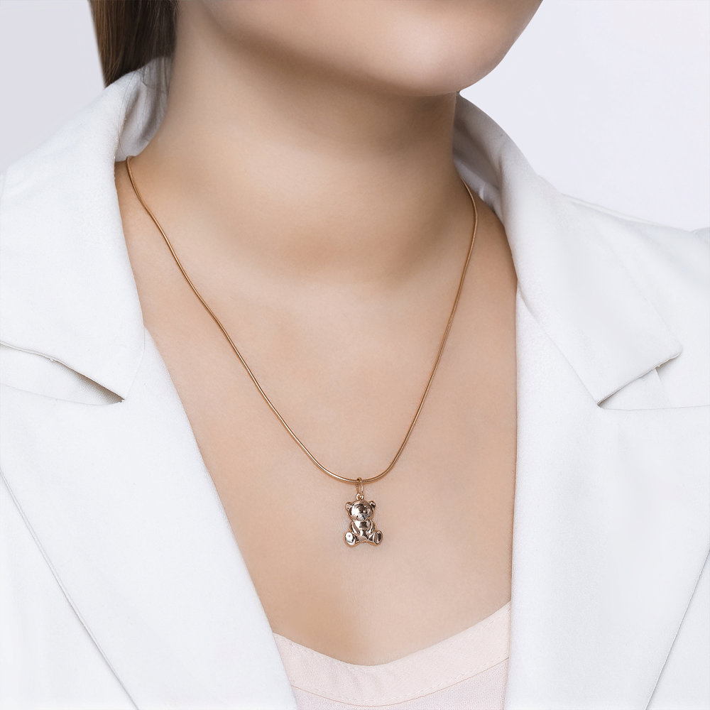 Замечательная детская подвеска «Мишка» из красного золота 585 пробы. Трогательная подвеска лаконичного дизайна в виде фигурки очаровательного медвежонка с милым акцентом сердечка на пяточке понравится и детям, и взрослым. Кулон станет отличным украшением на каждый день. Подарите своему ребенку чудесную золотую подвеску и яркие эмоции. Покупайте украшение выгодно в магазинах Мир Золота.