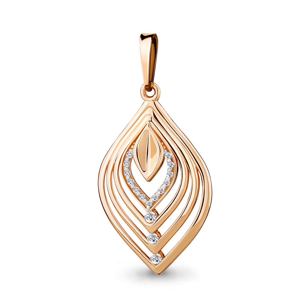 Подвеска из красного золота, декорированная фианитами, изящно повторяет очертания листа, словно бы впитавшего в себя лучи солнца. Каждое движение подчёркивается мягким блеском камней, а тёплый оттенок золота добавляет образу уют и тепло. Эта подвеска станет символом природной красоты и гармонии, напомнив о волшебстве окружающего мира.