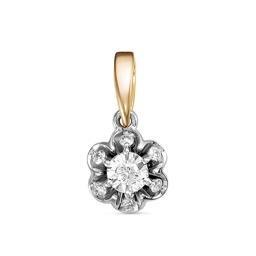 Нежная женская подвеска привлекает внимание необычным сочетанием теплого оттенка красного золота и прохладного блеска белого металла. Подвеска напоминает распустившийся цветок с элегантными лепестками, украшенными танцующими бриллиантами в закрепке специальной конструкции из белого золота. Благодаря такой уникальной технике крепления камни создают волшебную иллюзию живых капель росы, блестящих на солнце, делая подвеску воздушным и игривым украшением.