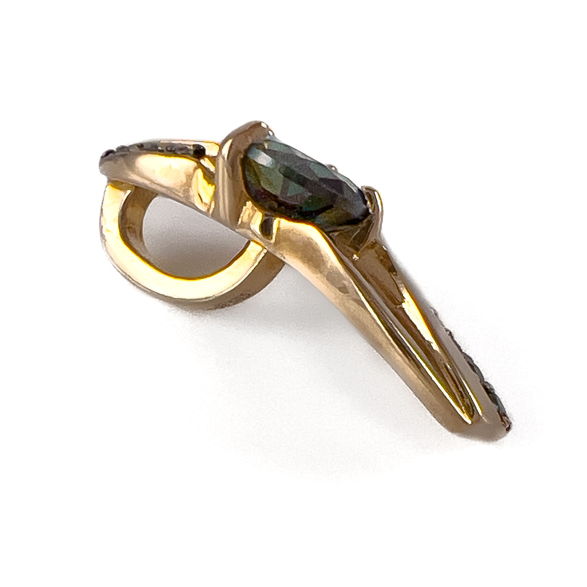 Изящная подвеска из красного золота 585 пробы украшена турмалином и фианитами. Подвеска, декорированная синтетическим турмалином добавит недостающего блеска повседневному образу - украшение станет прекрасным символом женственности и очарования. Купите золотую подвеску с турмалином по выгодной цене в ювелирных магазинах Мир Золота.
