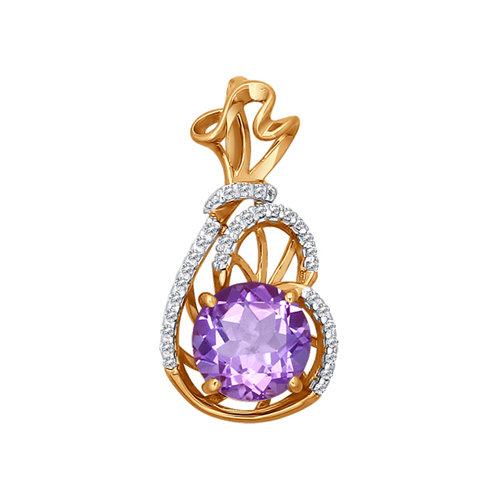 Подвеска из красного золота с аметистом и фианитами