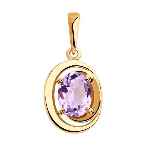 Классическая подвеска с аметистом из красного золота 585 пробы превосходно подчеркнет женскую красоту и элегантность. Переливчатое сияние полудрагоценного аметиста лавандового цвета в сочетании с благородным блеском металла создают притягательный образ украшения. Приобретайте ювелирное украшение по выгодной цене в магазинах Мир Золота.