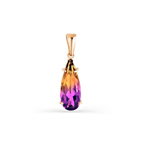 Подвеска из красного золота 585 пробы с привлекательным аметрином. Необыкновенный аметрин с ярким и глубоким сиянием дополняет лаконичный дизайн украшения. Изящное украшение станет заметным и очаровательным элементом повседневного образа обладательницы. Приобретайте ювелирное украшение для себя или в подарок по выгодной цене в магазинах Мир Золота.