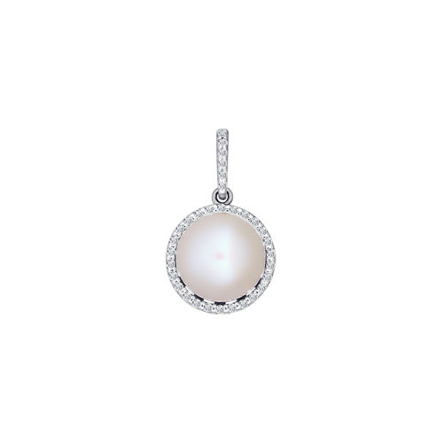 Классическая подвеска с жемчугом в обрамлении сияющих фианитов, из красного золота 585 пробы. Украшение с притягательным сиянием ювелирных камней отлично украсит изысканный женственный образ, и будет великолепно смотреться в комплекте с другими аксессуарами. Приобретайте ювелирное украшение для себя или в подарок по выгодным ценам в магазинах Мир Золота.