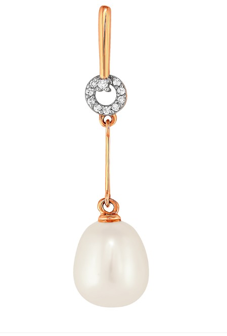 Превосходна подвеска с натуральным жемчугом и фианитами, из красного золота 585 пробы. Утонченное украшение с изумительным сиянием белоснежного жемчуга и прозрачных фианитов смотрится очень женственно и достойно, и эффектно дополнит элегантный образ владелицы. Приобретайте ювелирное украшение в подарок по выгодной цене в магазинах Мир Золота.