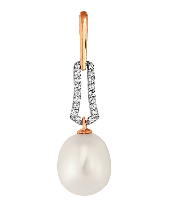 Великолепная подвеска из красного золота 585 пробы с белым жемчугом и фианитами эффектно украсит привлекательный женственный образ. Украшение отлично сочетается с различными стилями в одежде, добавляя им изысканности и элегантности. Приобретайте ювелирное украшение с жемчугом в подарок по выгодной цене в магазинах Мир Золота.