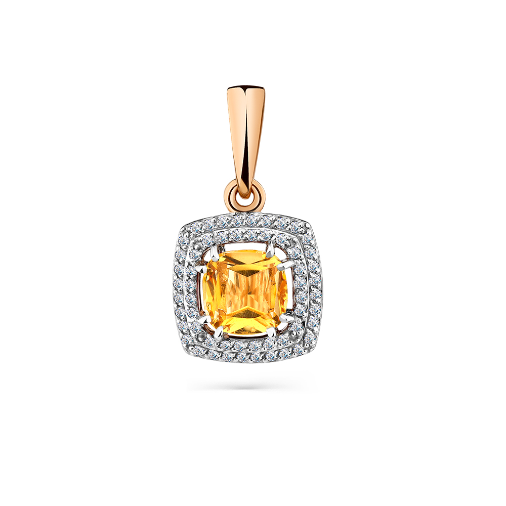 Декоративная подвеска из красного золота с ярким цитрином в окружении прозрачных фианитов не останется незамеченной. Блистательное украшение привлекает внимание кристальным блеском камней, и станет заметным акцентом элегантных классических или вечерних образов. Приобретайте украшение для себя или в подарок по выгодной цене в магазинах Мир Золота.