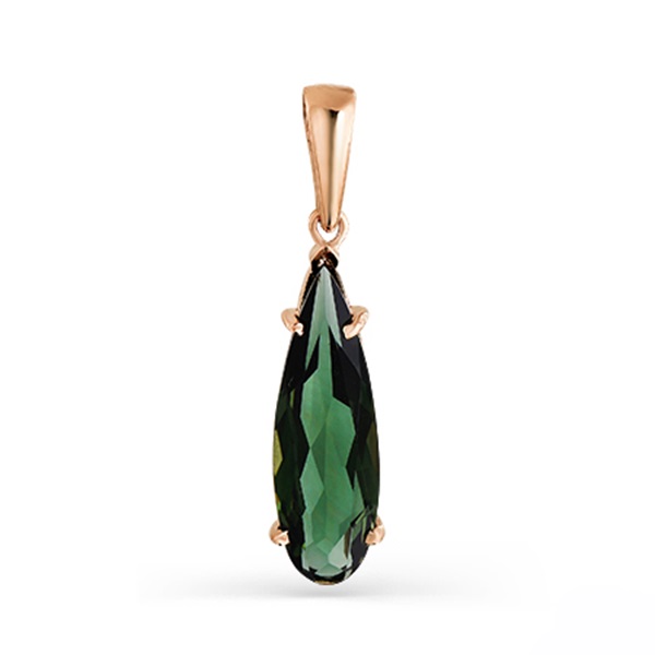 Женская подвеска с великолепным турмалином насыщенно-зеленого оттенка выполнена из красного золота 585 пробы. Эффектный турмалин утонченной формы огранки притягивает взгляд, украшение станет яркой деталью неповторимого образа, и подчеркнет женственность и индивидуальность владелицы. Приобретайте ювелирное украшение в подарок в магазинах Мир Золота.