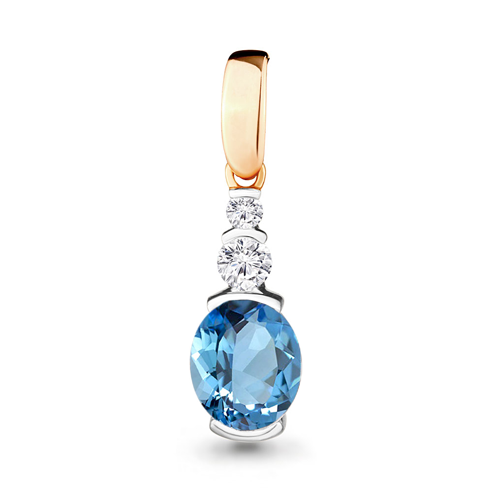Подвеска с натуральным топазом swiss blue и кристальными фианитами выполнена из красного и белого золота 585 пробы. Яркий топаз насыщенного голубого оттенка в сочетании с сияющим фианитами притягивает взгляд, красиво переливаясь на свету. Дополните свой идеальный образ изысканным акцентом, покупайте очаровательное украшение по выгодной цене в магазинах Мир Золота.