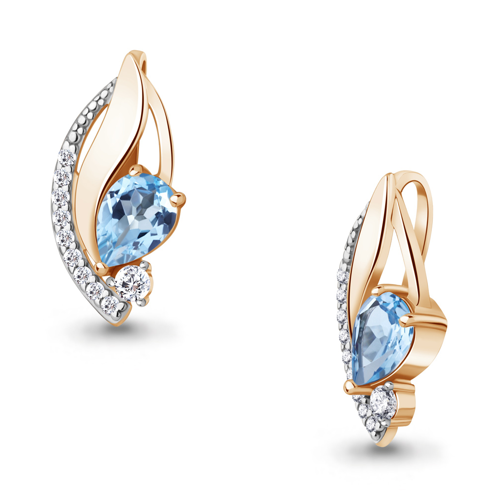 Изумительная подвеска из красного золота 585 пробы с голубым топазом swiss blue и кристальными фианитами. Изящный дизайн с ярким насыщенным блеском топаза и сияющими фианитами привлекает внимание, и станет неотъемлемой деталью нежного женственного образа. Приобретайте ювелирное украшение для прекрасного подарка по выгодной цене в магазинах Мир Золота.