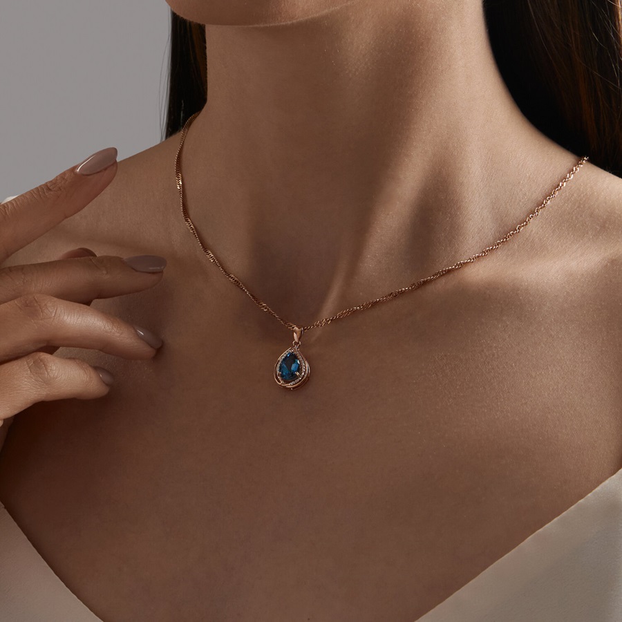 Элегантная подвеска с натуральным Лондон топазом в кристальном сиянии фианитов выполнена из красного золота 585 пробы. Крупный топаз грушевидной формы огранки покоряет своей неповторимой красотой, и наполнит образ владелицы особым шармом и изысканным блеском. С этим украшением вы всегда будете чувствовать себя уверенно и привлекательно. Приобретайте подвеску по выгодной цене в магазинах Мир Золота.