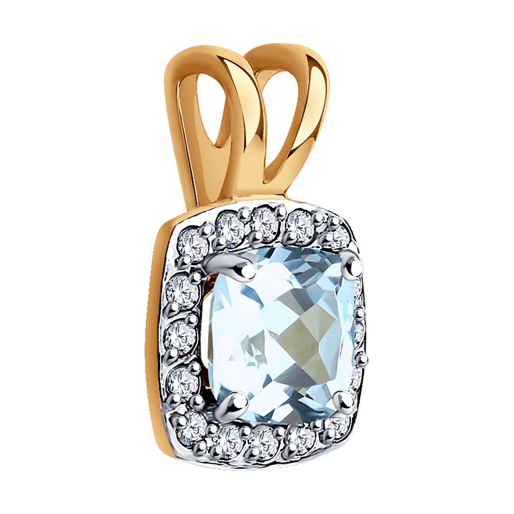 Привлекательная подвеска выполнена из красного золота 585 пробы с нежно-голубым топазом элегантной формы огранки в обрамлении кристальных фианитов. Миниатюрное украшение с изумительным блеском камней отлично подойдет для тонкой цепочки, и добавит в выбранный образ еще больше женственности и неповторимого шарма. Приобретайте украшение для идеального образа по выгодным ценам в магазинах Мир Золота.