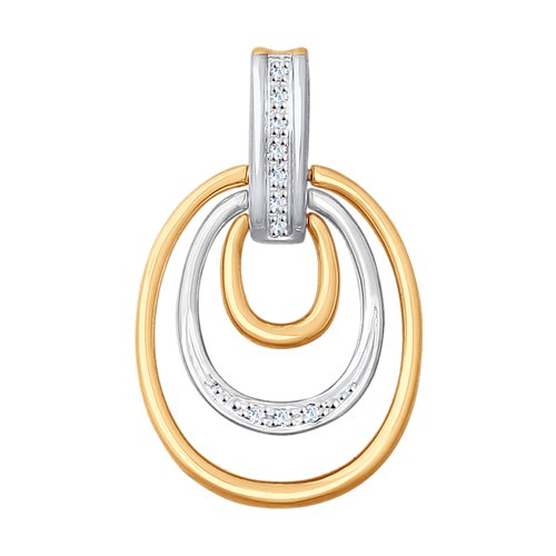 Подвеска с дорожками сияющих бриллиантов выполнена из красного и белого золота 585 пробы. Украшение современного дизайна с изысканным блеском драгоценных камней станет яркой изюминкой стильного женского образа, и будет актуально в любой ситуации - и в повседневной жизни, и на вечеринке. Приобретайте подвеску для себя или в подарок по выгодной цене в магазинах Мир Золота.