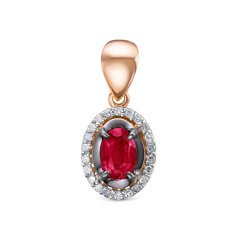 Подвеска с натуральным рубином в окружении дорожки сияющих бриллиантов выполнена из красного золота 585 пробы. Благородный блеск золота выгодно подчеркивает изысканное сияние драгоценных камней. Привлекательный аксессуар классического стиля станет прекрасным подарком для женщины, и яркой изюминкой повседневного или вечернего образа. Приобретайте подвеску по выгодным ценам в магазинах Мир Золота.