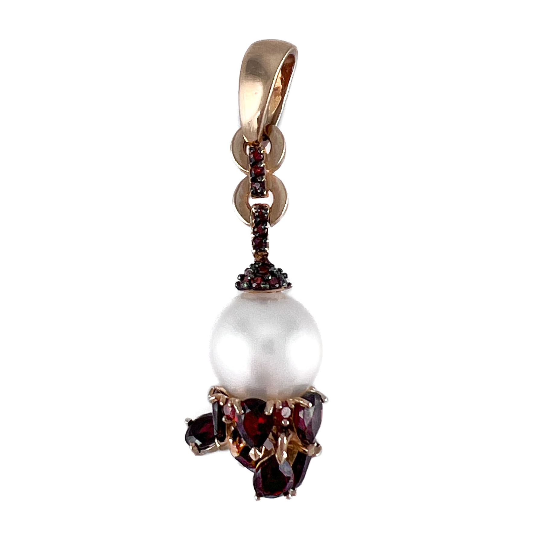 Изысканная дорогая подвеска из красного золота с жемчугом, гранатом и фианитами подарит истинную свободу для настоящего полета фантазии. Натуральный гранат расставляет блестящие акценты и притягивает внимание. Изящная подвеска от ювелирного бренда Александра представлена в магазинах Мир Золота.