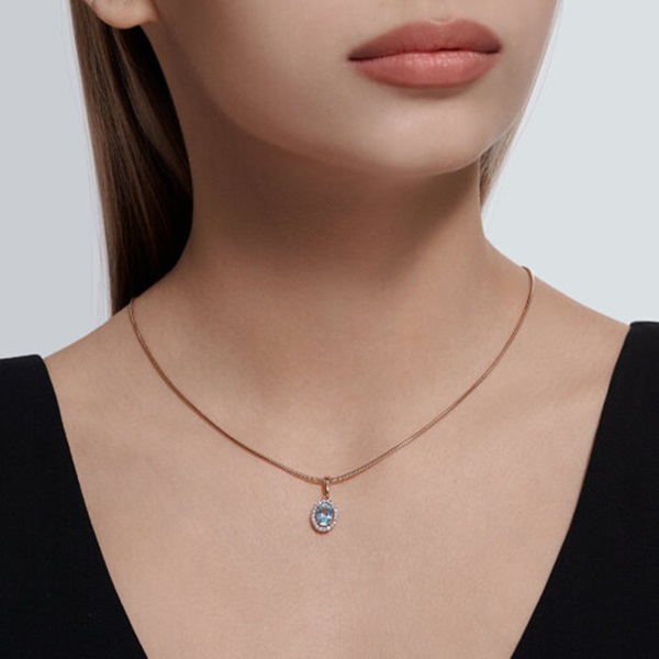 Классическая подвеска из красного золота 585 пробы с прекрасным голубым топазом в окружении дорожки из прозрачных фианитов. Украшение с прозрачным нежным блеском натурального камня в сиянии кристальных фианитов наполнит женственный образ изумительным блеском и очарованием, и подчеркнет утонченный вкус владелицы. Приобретайте ювелирное украшение в подарок по выгодной цене в магазинах Мир Золота.