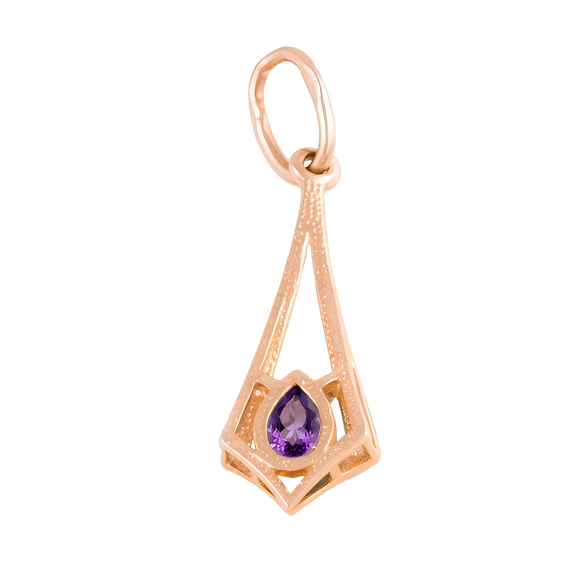 Изящная подвеска из красного золота 585 пробы с прекрасным аметистом грушевидной формы огранки и сияющими фианитами сделает женский облик более привлекательным. Элегантное украшение отлично впишется в современные образы, и будет прекрасно смотреться в комплекте с серьгами. Приобретайте подвеску в подарок по выгодной цене в магазинах Мир Золота.