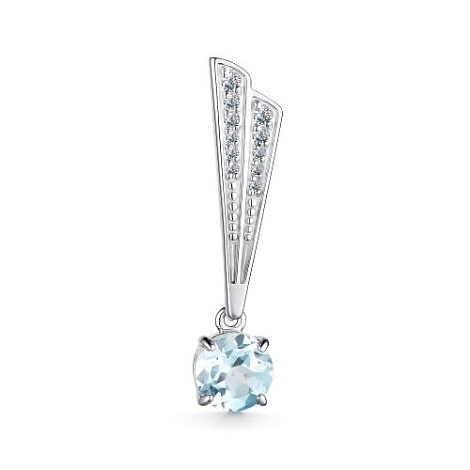 Стильная подвеска из родированного серебра 925 пробы с топазом Sky Blue и дорожками с прозрачными фианитами. Украшение современного дизайна с нежным блеском прекрасного топаза и искристыми фианитами великолепно смотрится, и будет актуальным дополнением различных образов. Приобретайте подвеску для себя или в подарок по выгодной цене в магазинах Мир Золота.
