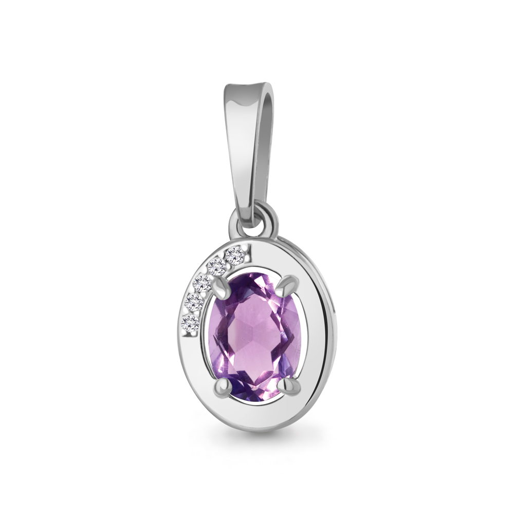Подвеска из родированного серебра 925 пробы с аметистом и дорожкой с кристальными фианитами отлично впишется в повседневный, офисный и вечерний стиль. Украшение с нежным сиянием аметиста в оправе из серебристого металла наполнит образ владелицы неповторимым шармом и очарованием. Приобретайте подвеску по выгодным ценам в магазинах Мир Золота.