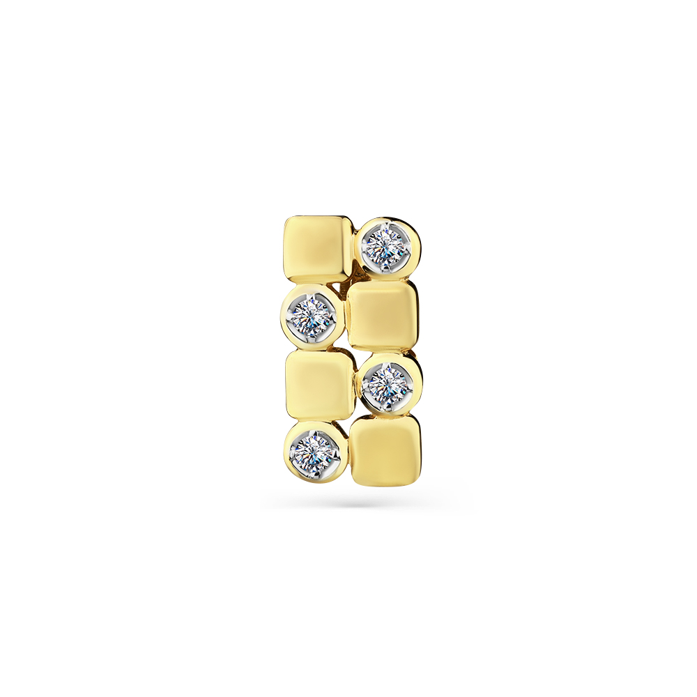 Подвеска-бегунок современного ювелирного дизайна с великолепными фианитами выполнена из желтого золота 585 пробы. Кристальный блеск прозрачных камней выгодно подчеркнут лимонным оттенком благородного золота. Стильный аксессуар оригинально смотрится, и станет актуальным дополнением повседневного образа. Приобретайте подвеску в подарок по выгодной цене в магазинах Мир Золота.