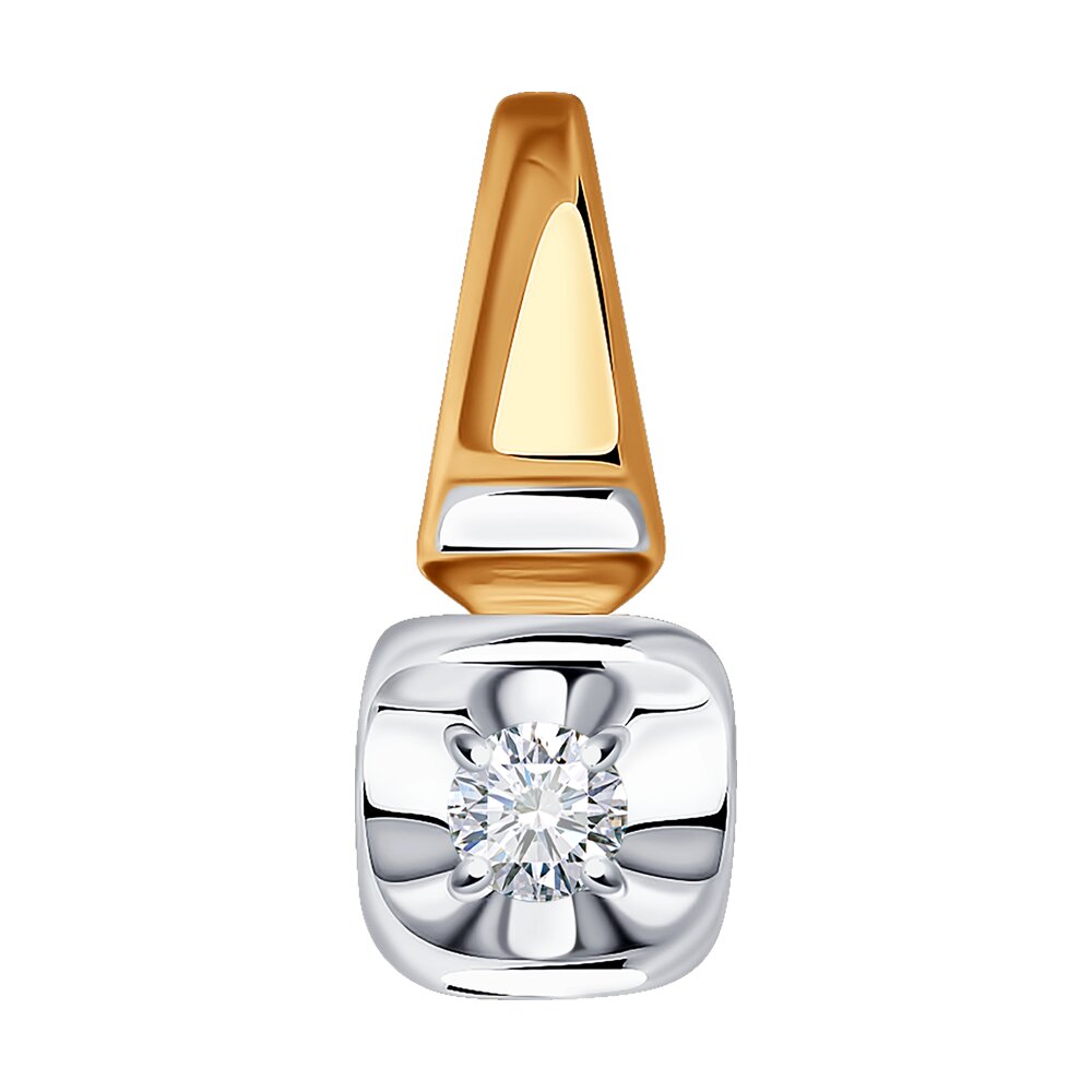 Миниатюрная подвеска из красного и белого золота 585 пробы с натуральным бриллиантом подчеркнет женственность и чувственность владелицы. Белый оттенок золота эффектно акцентирует сияющий бриллиант, и подчеркивает его неповторимую красоту и кристальное сияние. Дополните свой идеальный образ изысканным акцентом, покупайте украшение по выгодным ценам в магазинах Мир Золота.