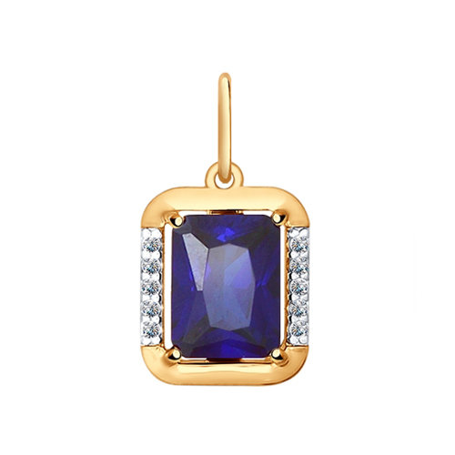 —Подвеска из красного золота с корундом сапфировым и фианитами