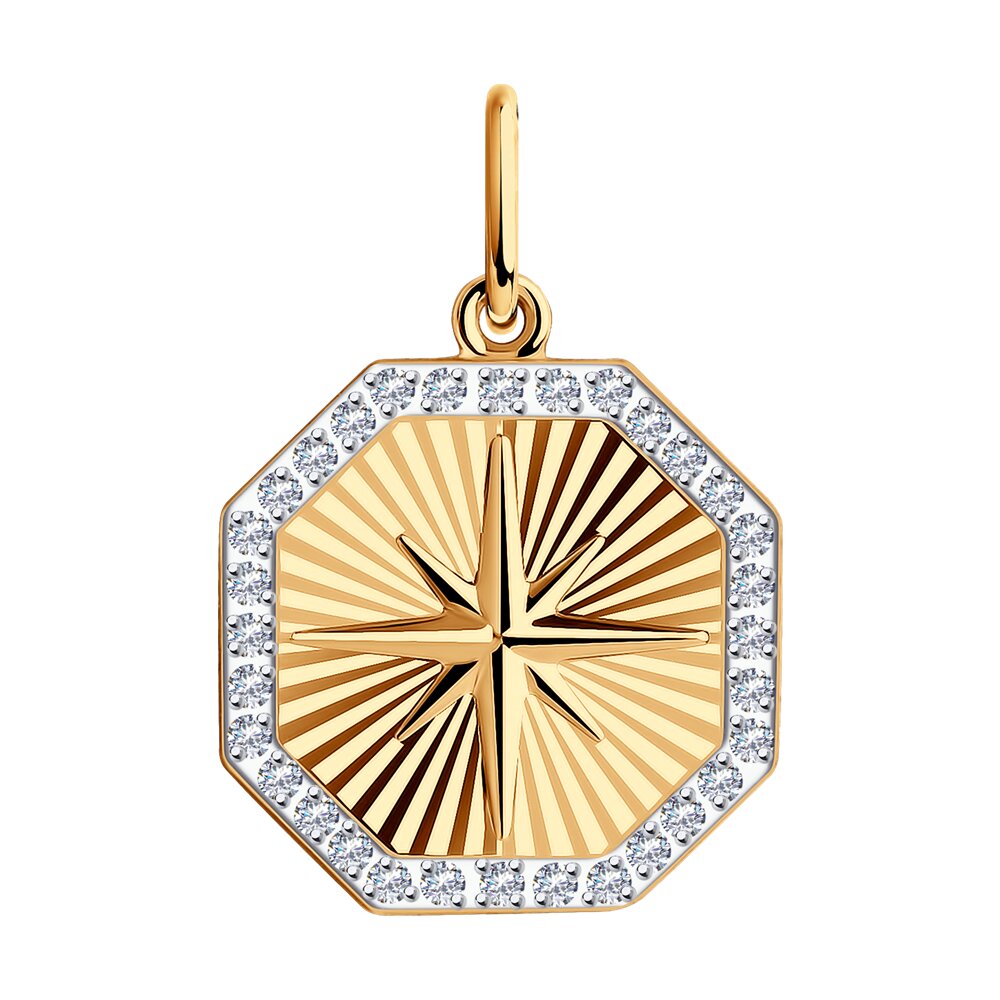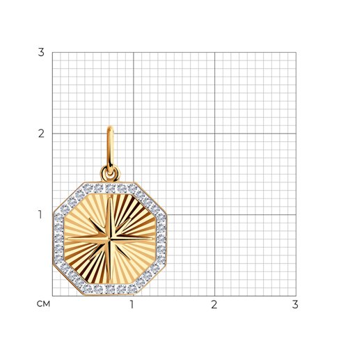 Очаровательная подвеска формы октагон, декорированная прозрачными фианитами, выполнена из красного золота 585 пробы. Подвеска с алмазными гранями на золоте сделает образ женщины более привлекательным. Алмазные грани дополняют и усиливают сияние драгоценного украшения. Приобретайте подвеску по выгодным ценам в магазинах Мир Золота.