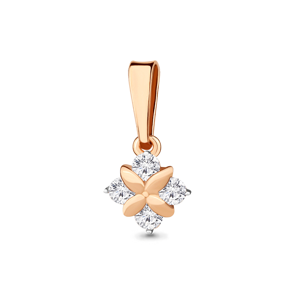 Женственная подвеска выполнена из теплого красного золота, создающего ощущение уюта и роскоши. Центральный элемент украшен несколькими фианитами, которые переливаются цветами радуги при попадании света. Эта подвеска станет изысканным акцентом в любом образе, подчеркивая вкус и индивидуальность своей обладательницы.