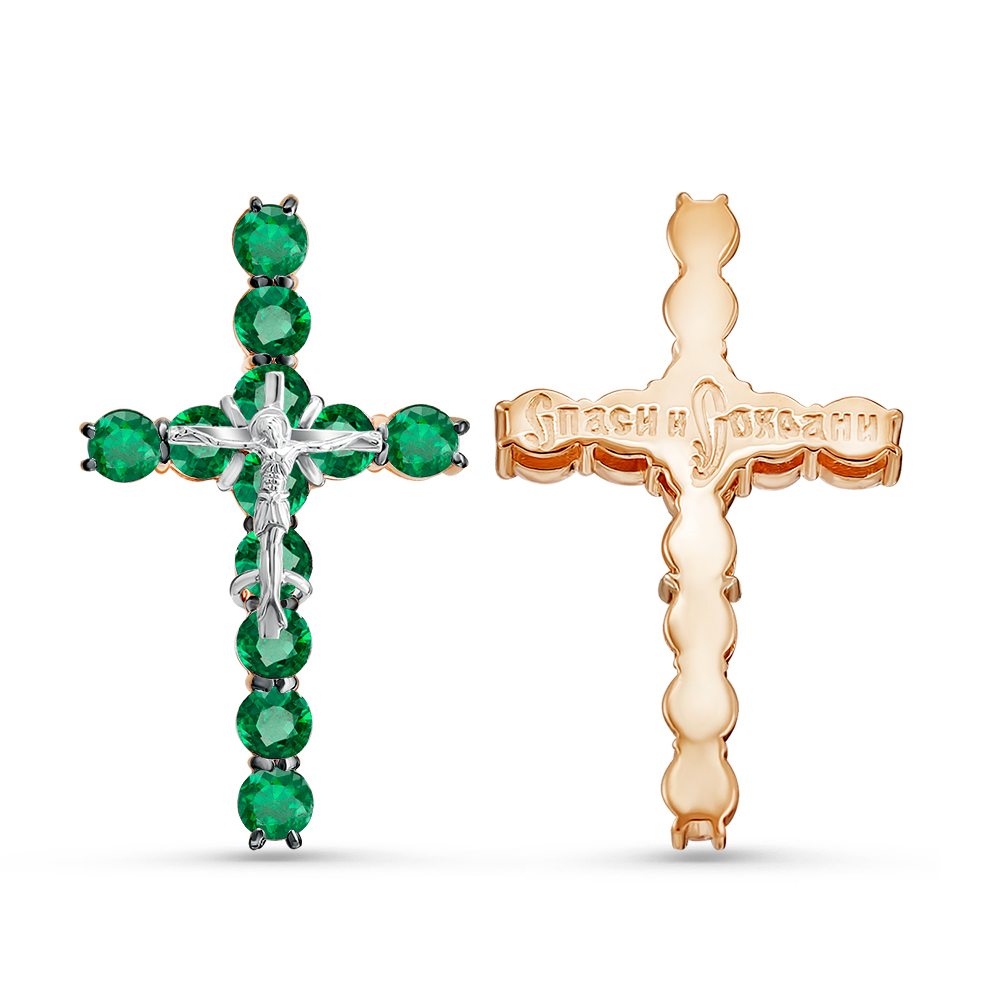 —Крестик православный из красного золота с изумрудами