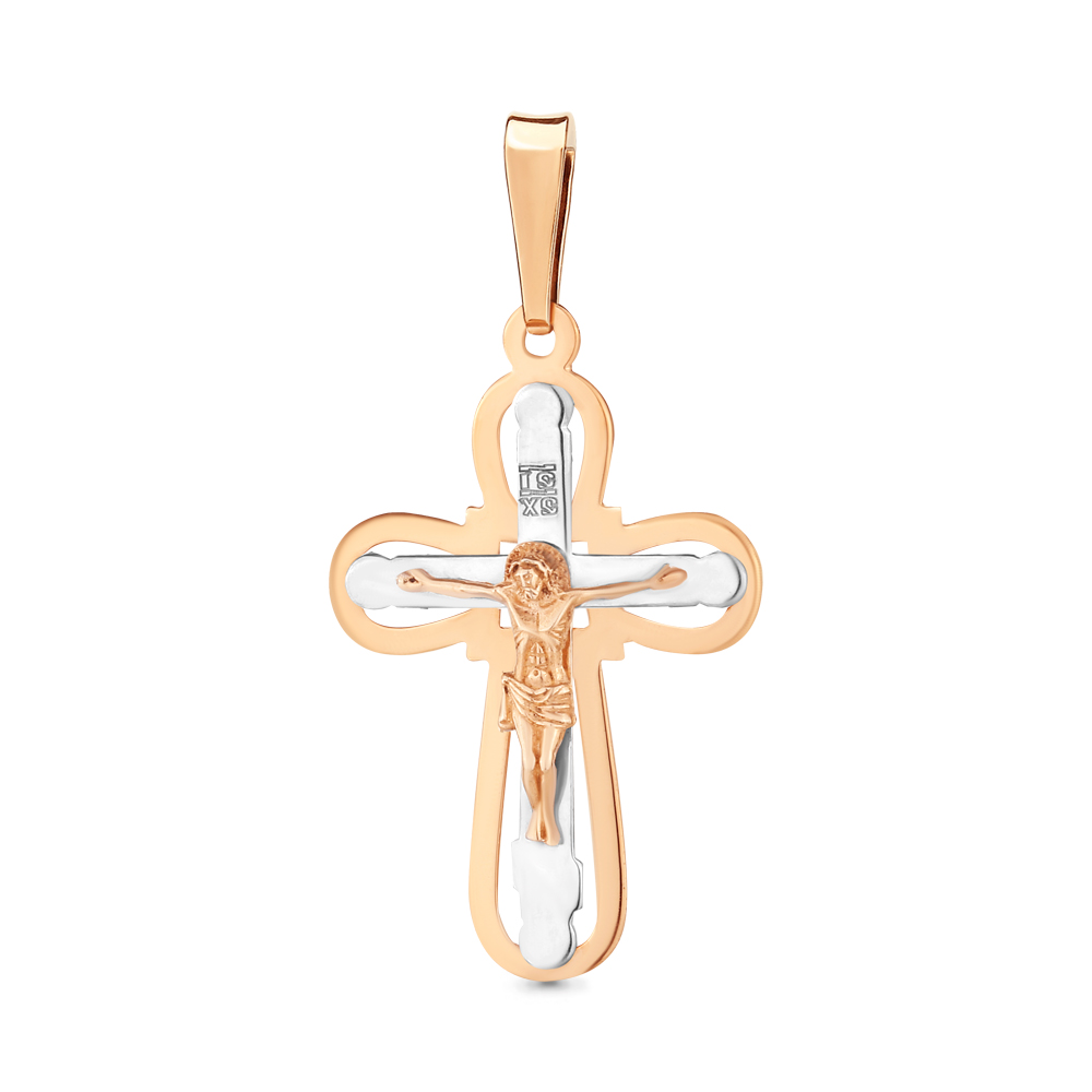 Нательный православный крестик из золота с распятием, несомненно, будет помогать на протяжении всей жизни. На оборотной стороне слова «Спаси и Сохрани». Сочетание красного и белого золота выглядит невероятно изысканно, дорого, но в то же время сдержанно и уместно. Резное обрамление лишь усиливает блеск украшения. Купите золотой крестик по доступной цене в магазинах Мир Золота.