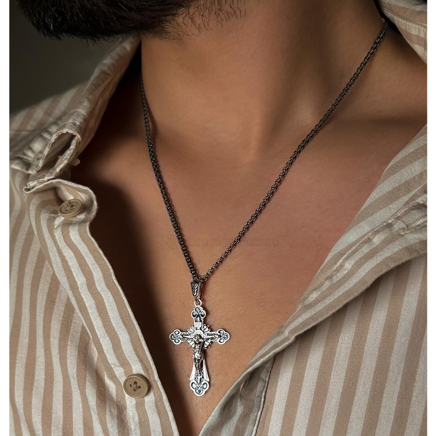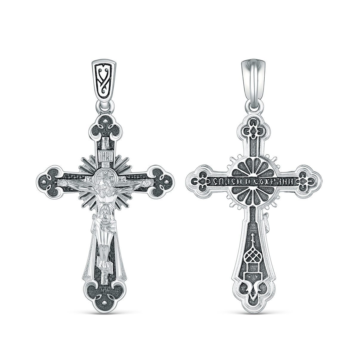 Крестик христианский из чернёного серебра 925 пробы с распятием и гравировкой «Спаси и сохрани» на оборотной стороне станет для владельца не просто украшением, а особым символом веры и защиты от невзгод. Символичный аксессуар сделает образ обладателя более стильным и выразительным, и подчеркнет индивидуальность. Приобретайте ювелирную подвеску по выгодной цене в магазинах Мир Золота.