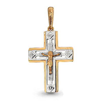 Нательный крестик из комбинированного золота 585 пробы – личная святыня и знак устремления к духовной и эстетической цельности. Золотые линии становятся притягательным акцентом - блеск красного и белого металла делает его уникальной и яркой деталью образа. На оборотной стороне украшения слова «Спаси и сохрани». Приобретайте символичное украшение для подарка близкому человеку по выгодной цене в магазинах Мир Золота.