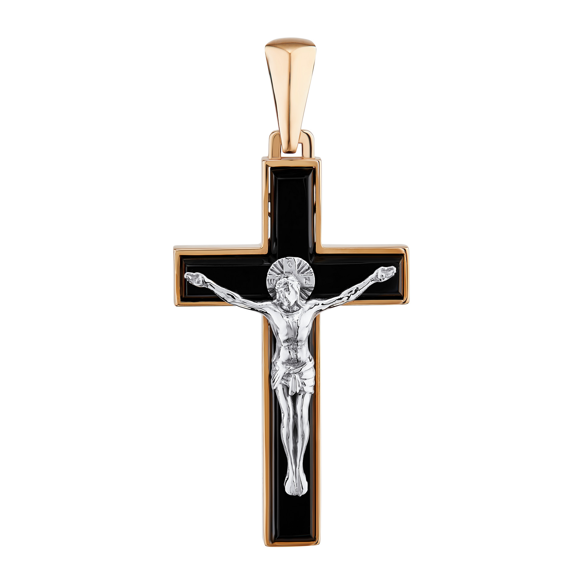 Христианский крестик с распятием из красного золота 585 пробы с черным агатом будет прекрасным выбором для подарка. Стильный крестик с насыщенным блеском агата привлекает внимание, и станет яркой деталью современного образа и личным защитным оберегом владельца. Приобретайте ювелирную подвеску по выгодной цене в магазинах Мир Золота.
