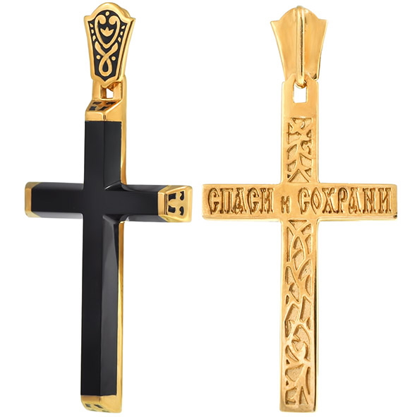 Христианский крестик минималистичного дизайна с гравировкой «Спаси и сохрани» на оборотной стороне выполнен из красного золота 585 пробы с черным агатом. Выразительный крестик для любителей лаконичных форм отлично впишется в современный стиль, и станет символичным аксессуаром для владельца. Приобретайте ювелирную подвеску по выгодной цене в магазинах Мир Золота.