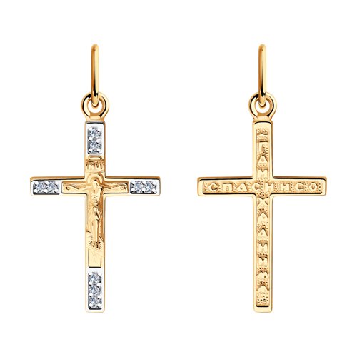 Православный крестик из яркого красного золота, выделяющегося характерным тёплым оттенком. Прозрачные фианиты наполняют изделие дополнительной привлекательностью и игривым блеском. Четкий контур и ясные грани создают впечатление аккуратности и высокого качества изготовления. Украшение достойно займёт своё место среди любимых аксессуаров, привнося ощущение красоты и духовного тепла своей обладательнице.