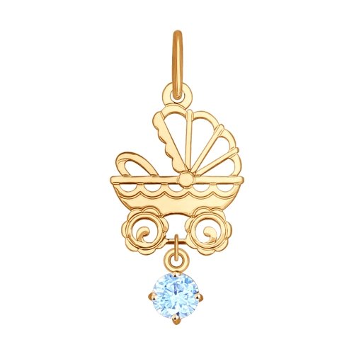 —Подвеска «Коляска» из красного золота 585 пробы с фианитом