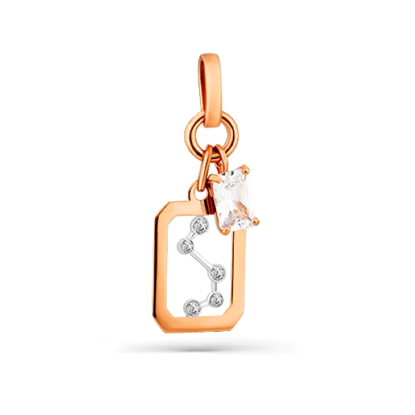 Оригинальная подвеска из серии знаки зодиака, с горным хрусталем популярной огранки и символичным рисунком из прозрачных топазов, выполнена из красного золота 585 пробы. Украшение станет очаровательной и заметной деталью повседневного образа обладательницы. Приобретайте ювелирное украшение в подарок по выгодной цене в магазинах Мир Золота.