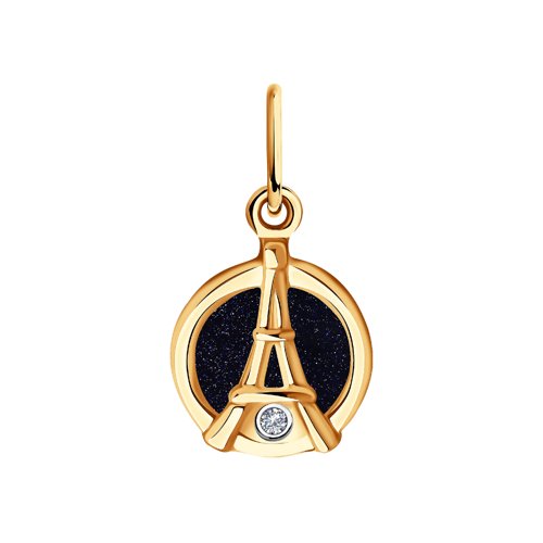 —Подвеска из красного золота с бриллиантом и авантюриновым стеклом «Эйфелева башня»