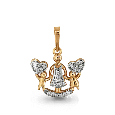 Оригинальная подвеска из красного золота 585 пробы выполнена в виде фигурок мамы с детьми, и украшена сердечками и фианитовыми вставками из 23 прозрачных камней. Символичное украшение отражает любовь матери и детей, и станет превосходным семейным талисманом. Приобретайте замечательный кулон в подарок выгодно в магазинах Мир Золота.