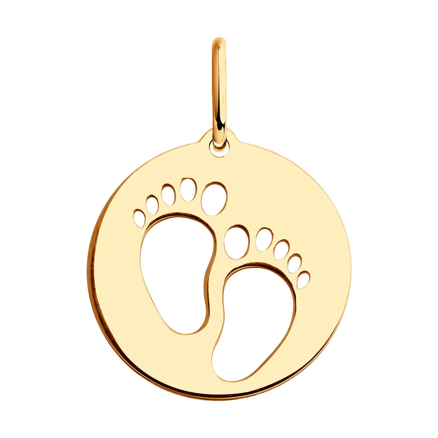 Замечательная круглая подвеска «Пяточки» выполнена из красного золота 585 пробы. Милая золотая подвеска с изображением ножек младенца идеально подходит для символичного подарка на рождение малыша. Приобретайте очаровательное и трогательное украшение в подарок для своих любимых по выгодным ценам в магазинах Мир Золота.